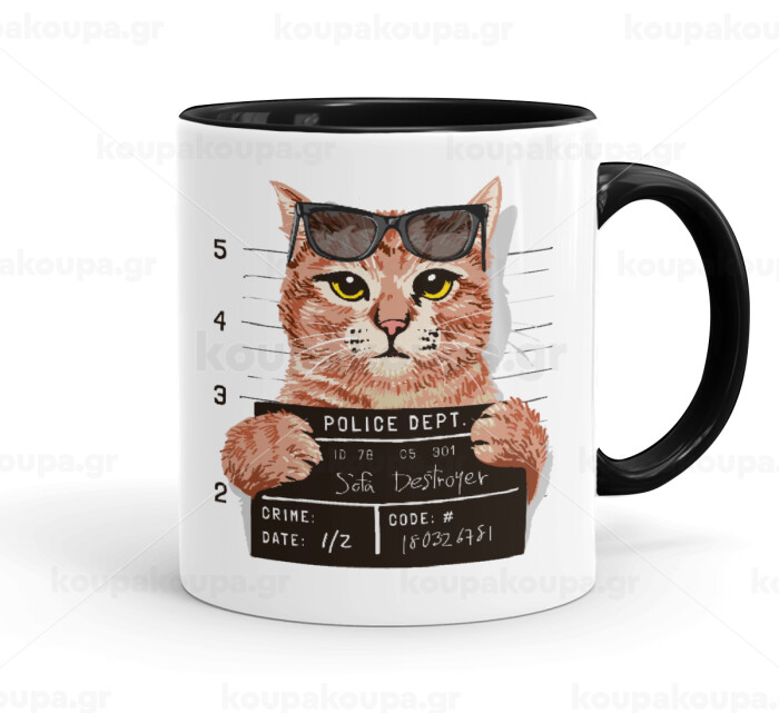 Cool cat, Κούπα χρωματιστή μαύρη, κεραμική, 330ml