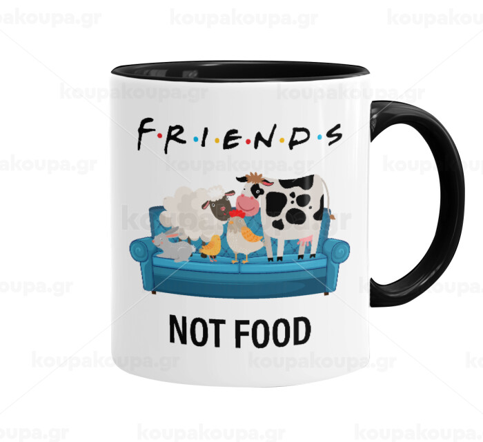 friends, not food, Κούπα χρωματιστή μαύρη, κεραμική, 330ml