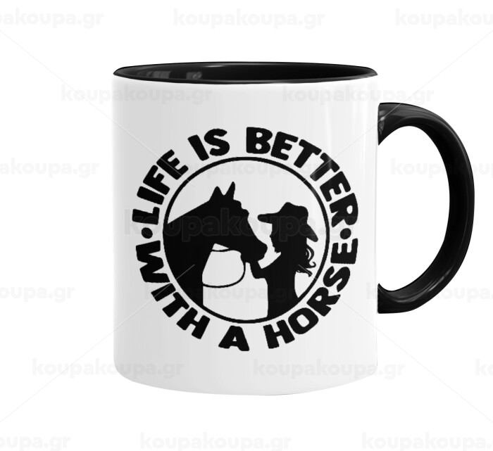 Life is Better with a Horse, Κούπα χρωματιστή μαύρη, κεραμική, 330ml