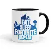 Eat Sleep Fortnite Repeat, Κούπα χρωματιστή μαύρη, κεραμική, 330ml
