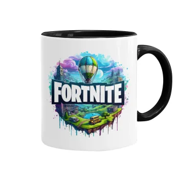 Fortnite land, Κούπα χρωματιστή μαύρη, κεραμική, 330ml