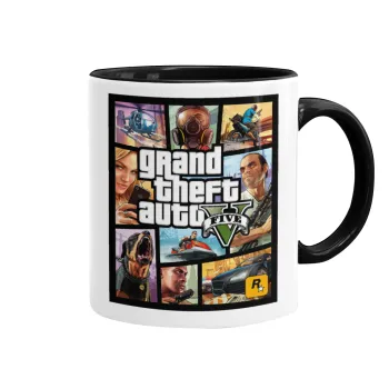 GTA V, Κούπα χρωματιστή μαύρη, κεραμική, 330ml