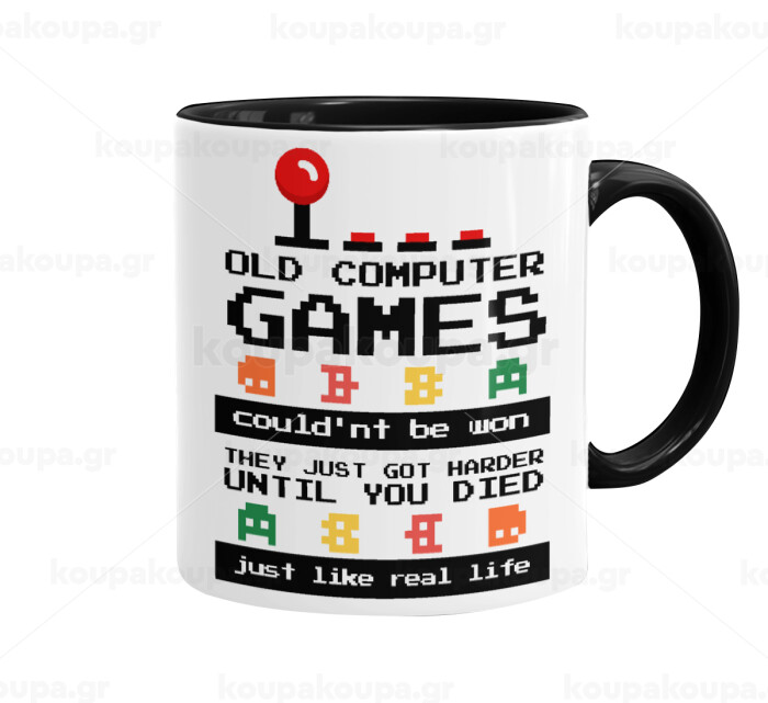 OLD computer games couldn't be won just like real life!, Κούπα χρωματιστή μαύρη, κεραμική, 330ml