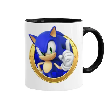Sonic the hedgehog, Κούπα χρωματιστή μαύρη, κεραμική, 330ml