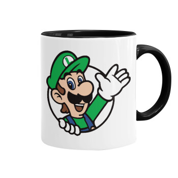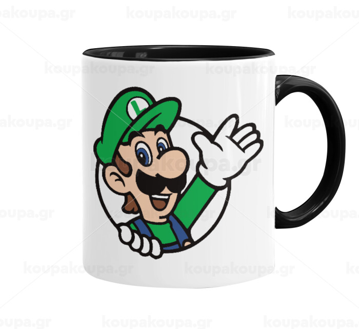 Super mario Luigi win, Κούπα χρωματιστή μαύρη, κεραμική, 330ml