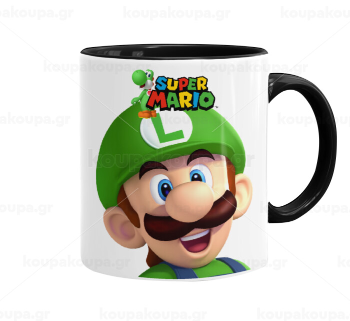 Super mario Luigi, Κούπα χρωματιστή μαύρη, κεραμική, 330ml