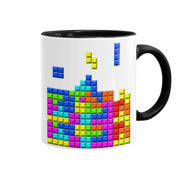 Tetris blocks, Κούπα χρωματιστή μαύρη, κεραμική, 330ml