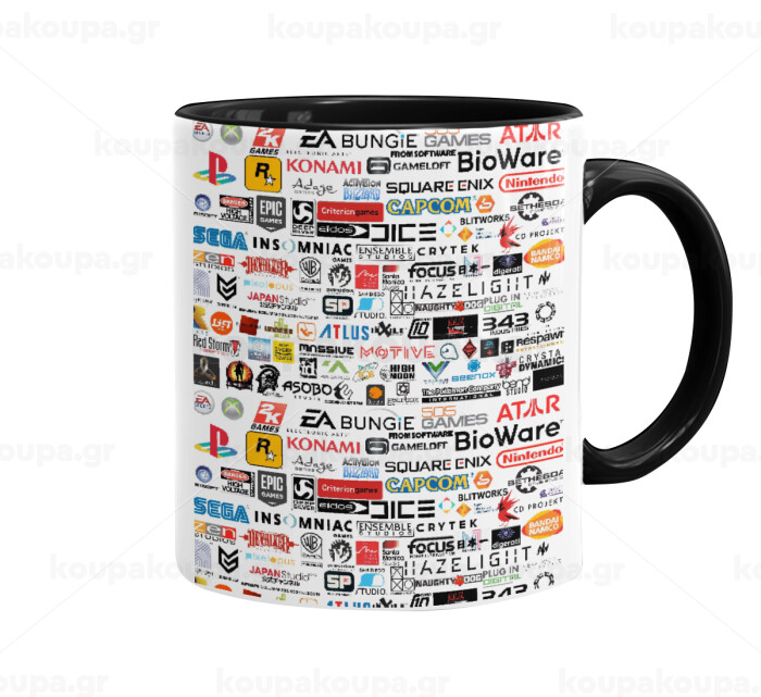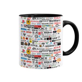 Video Game Studio Logos, Κούπα χρωματιστή μαύρη, κεραμική, 330ml