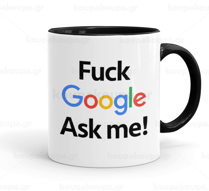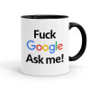 Fuck Google, Ask me!, Κούπα χρωματιστή μαύρη, κεραμική, 330ml