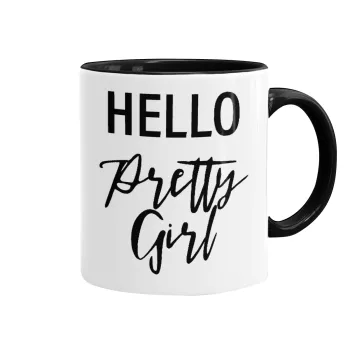 Hello pretty girl, Κούπα χρωματιστή μαύρη, κεραμική, 330ml