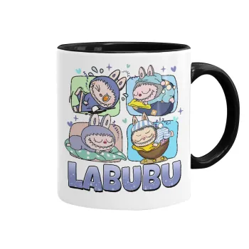 Labubu, Κούπα χρωματιστή μαύρη, κεραμική, 330ml