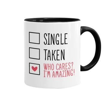 Single, Taken, Who cares i'm amazing, Κούπα χρωματιστή μαύρη, κεραμική, 330ml