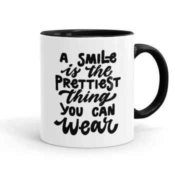 A smile is the prettiest thing you can wear, Κούπα χρωματιστή μαύρη, κεραμική, 330ml