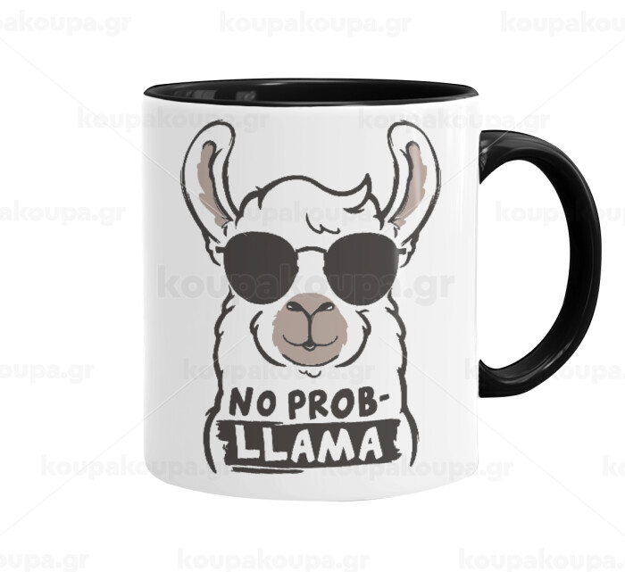 No Prob Llama, Κούπα χρωματιστή μαύρη, κεραμική, 330ml