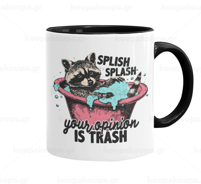 Splish splash your opinion is trash, Κούπα χρωματιστή μαύρη, κεραμική, 330ml