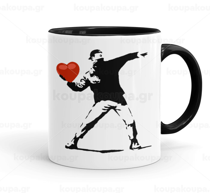 Banksy (The heart thrower), Κούπα χρωματιστή μαύρη, κεραμική, 330ml