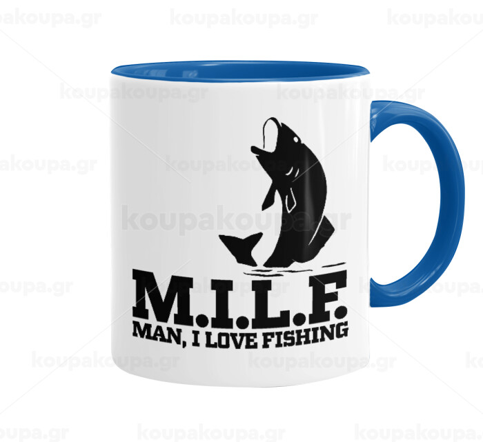 M.I.L.F. Mam i love fishing, Κούπα χρωματιστή μπλε, κεραμική, 330ml