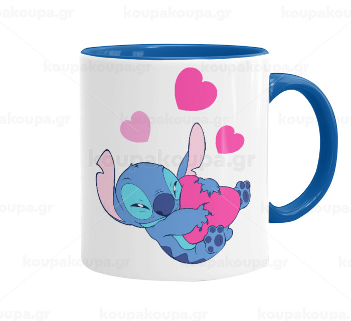 Lilo & Stitch hugs and hearts, Κούπα χρωματιστή μπλε, κεραμική, 330ml