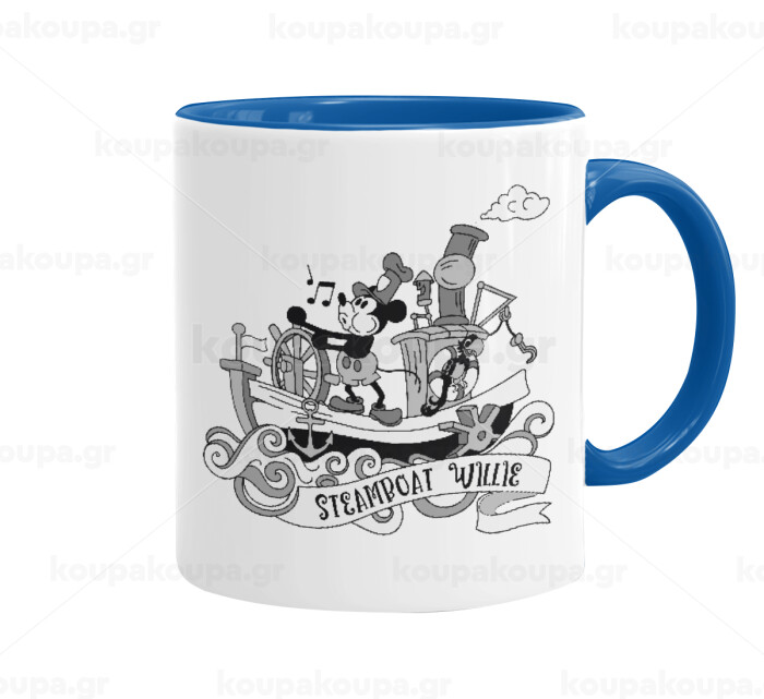 Mickey steamboat, Κούπα χρωματιστή μπλε, κεραμική, 330ml