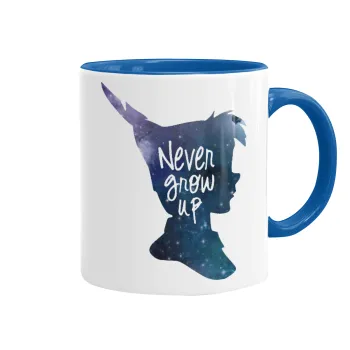 Never Grow UP, Κούπα χρωματιστή μπλε, κεραμική, 330ml