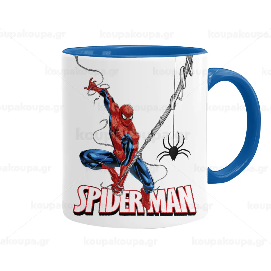 Spiderman fly, Κούπα χρωματιστή μπλε, κεραμική, 330ml