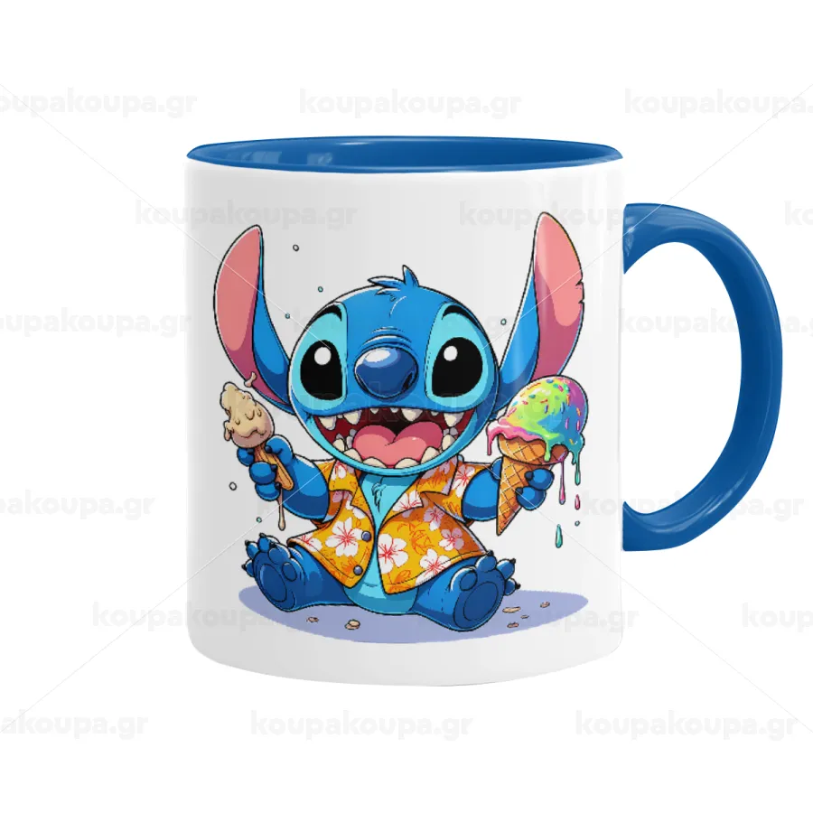 Stitch Ice cream, Κούπα χρωματιστή μπλε, κεραμική, 330ml