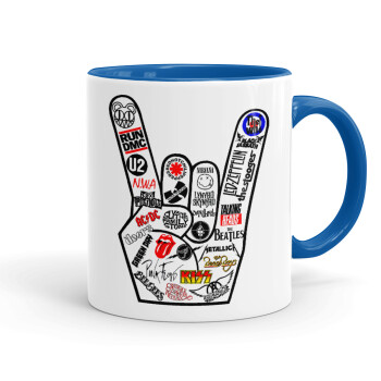 Best Rock Bands hand, Κούπα χρωματιστή μπλε, κεραμική, 330ml