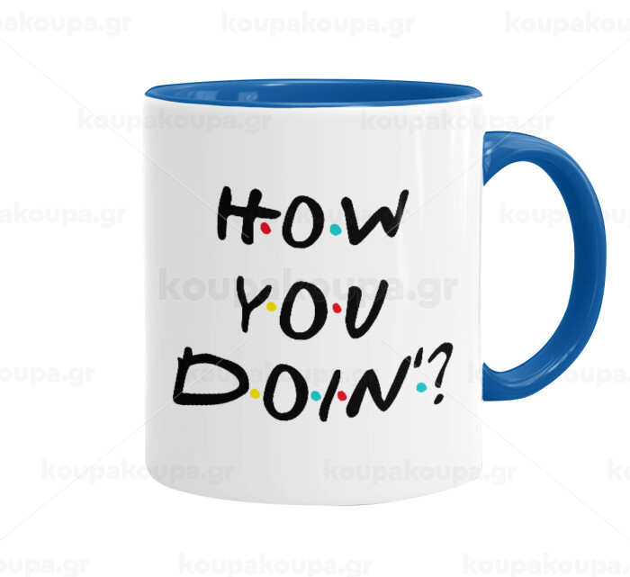 Friends How You Doin'?, Κούπα χρωματιστή μπλε, κεραμική, 330ml
