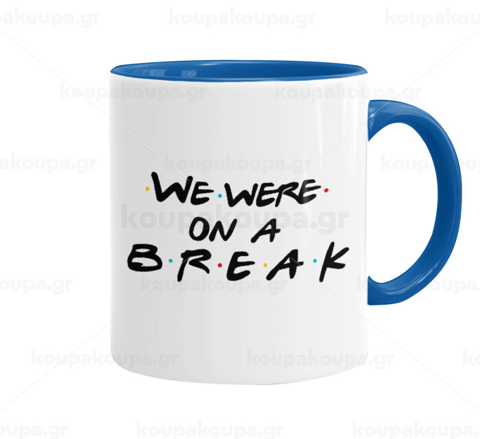 Friends we were on a break, Κούπα χρωματιστή μπλε, κεραμική, 330ml