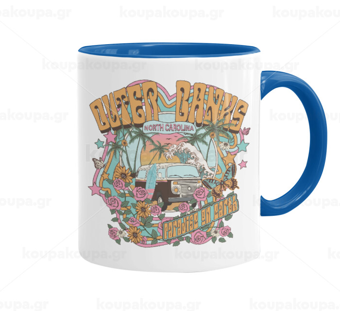 Outerbanks paradise on earth, Κούπα χρωματιστή μπλε, κεραμική, 330ml