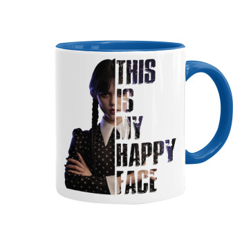 Wednesday, This is my happy face, Κούπα χρωματιστή μπλε, κεραμική, 330ml