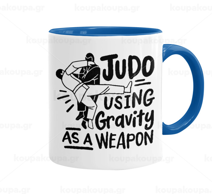 Judo using gravity as a weapon, Κούπα χρωματιστή μπλε, κεραμική, 330ml