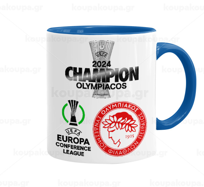 Olympiacos UEFA Europa Conference League Champion 2024, Κούπα χρωματιστή μπλε, κεραμική, 330ml