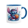 Stitch Basketball, Κούπα χρωματιστή μπλε, κεραμική, 330ml