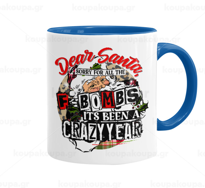 Dear Santa, sorry for all the F-bombs, Κούπα χρωματιστή μπλε, κεραμική, 330ml