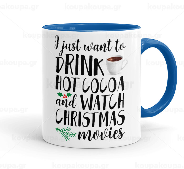 I just want to drink hot cocoa and watch christmas movies, Κούπα χρωματιστή μπλε, κεραμική, 330ml
