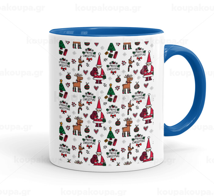 Santas, Deers & Trees, Κούπα χρωματιστή μπλε, κεραμική, 330ml