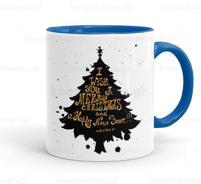 Tree, i wish you a merry christmas and a Happy New Year!!! xoxoxo, Κούπα χρωματιστή μπλε, κεραμική, 330ml