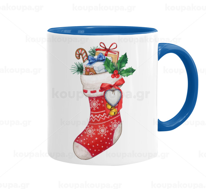 Xmas boot, Κούπα χρωματιστή μπλε, κεραμική, 330ml