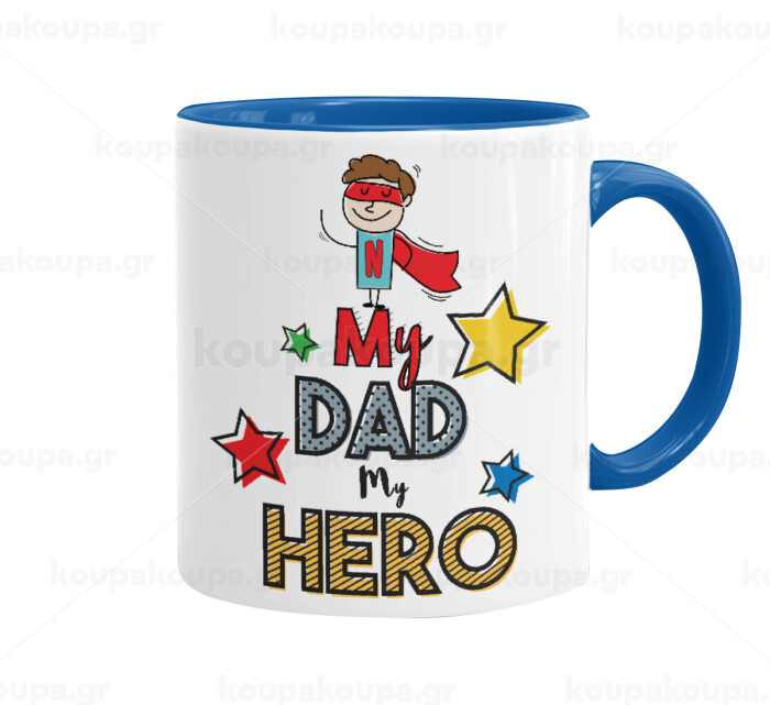 My Dad, my Hero!!!, Κούπα χρωματιστή μπλε, κεραμική, 330ml
