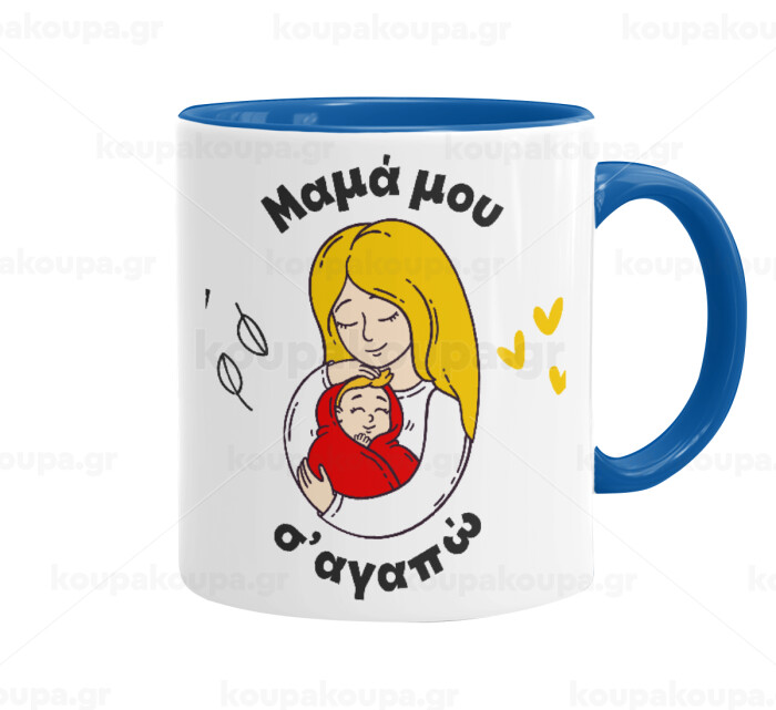 Μανούλα σ'αγαπώ αγκαλιά!, Κούπα χρωματιστή μπλε, κεραμική, 330ml