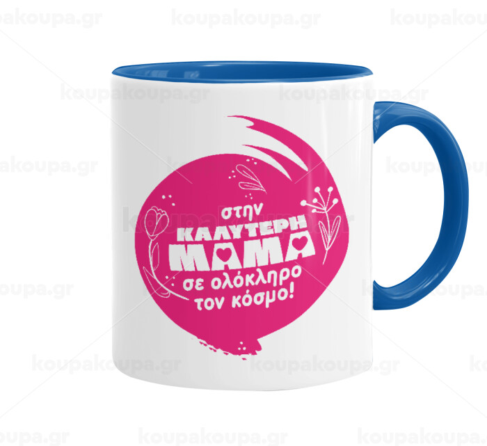 Στην καλύτερη μαμά του κόσμου!, Κούπα χρωματιστή μπλε, κεραμική, 330ml