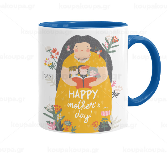 Cute mother reading book, happy mothers day, Κούπα χρωματιστή μπλε, κεραμική, 330ml