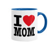 I LOVE MOM, Κούπα χρωματιστή μπλε, κεραμική, 330ml
