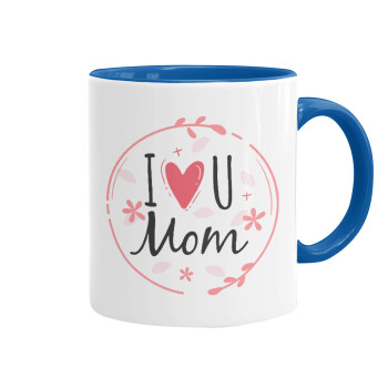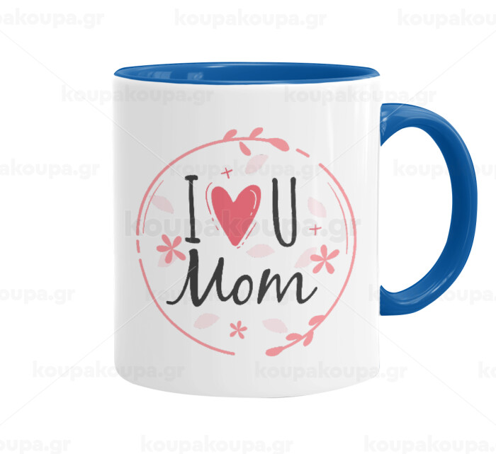 I Love you Mom pink, Κούπα χρωματιστή μπλε, κεραμική, 330ml