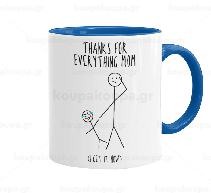 Thanks for everything mom, Κούπα χρωματιστή μπλε, κεραμική, 330ml