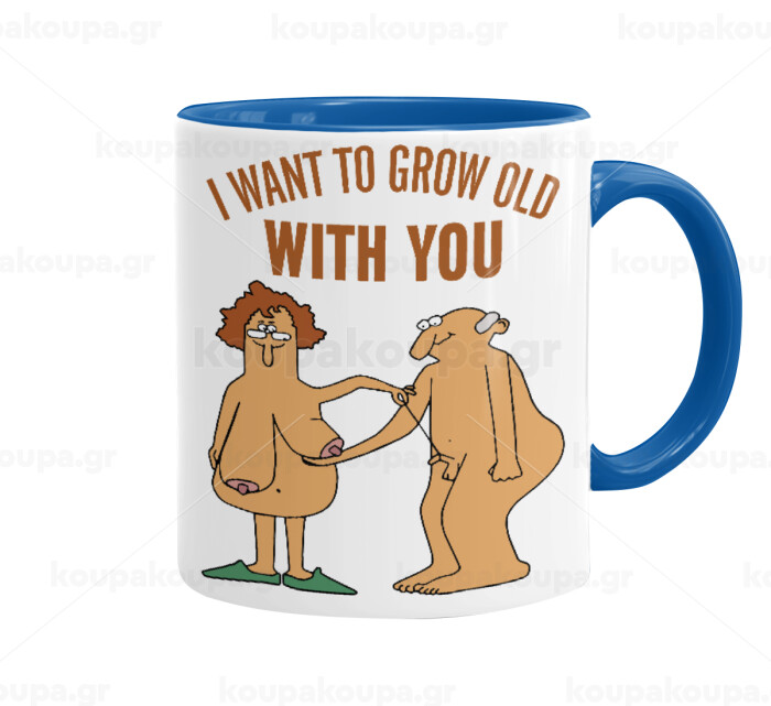 I want to grow old with you, Κούπα χρωματιστή μπλε, κεραμική, 330ml