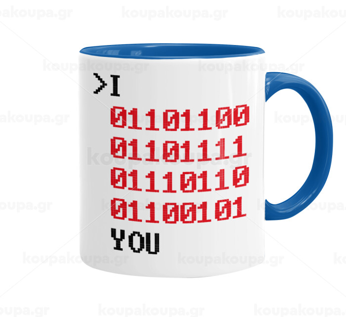 I .... YOU, binary secret MSG, Κούπα χρωματιστή μπλε, κεραμική, 330ml