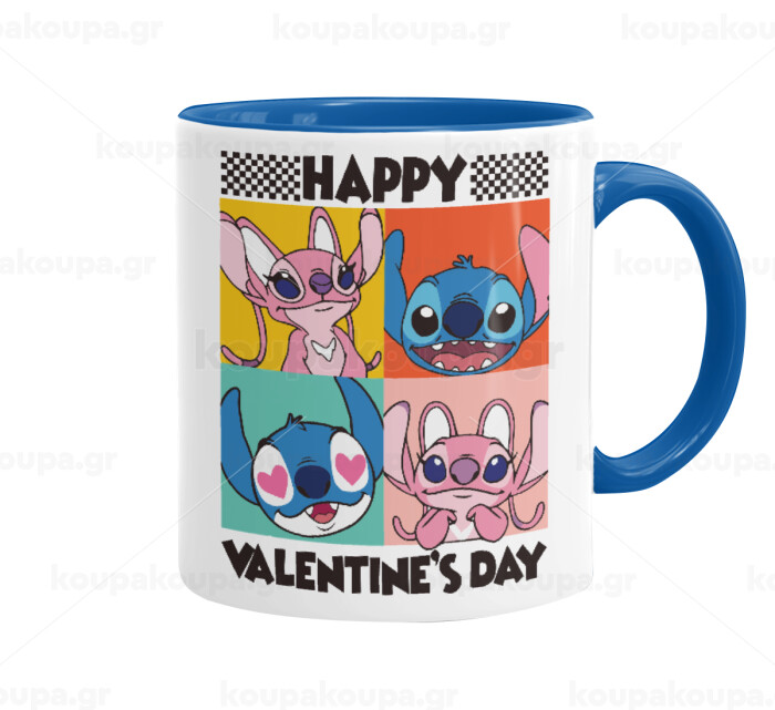 Lilo & Stitch Happy valentines day, Κούπα χρωματιστή μπλε, κεραμική, 330ml