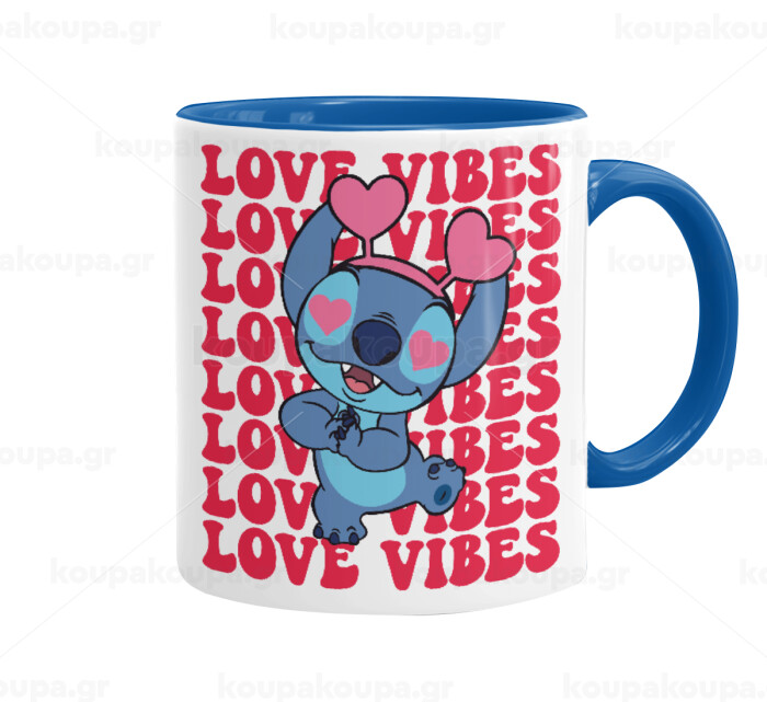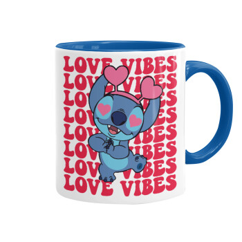 Lilo & Stitch Love vibes, Κούπα χρωματιστή μπλε, κεραμική, 330ml